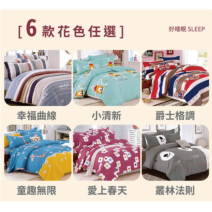 *精心挑選設計的花色,色澤穩定經久耐洗品味與質感兼具環保健康的寢具