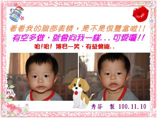 在整理照片時,才發現生命的美妙,女兒在周歲前的模樣,真的很像男娃娃,怪不得大家看到她,都叫她"弟弟".....(既時我們身穿粉色系的衣服哦!!)