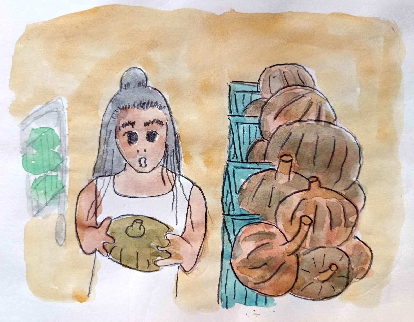 ⬆ 大賣場內的小女孩 (雄獅水粉+鉛筆+計算紙) 之前畫水彩都是用自來水筆,前幾天心血來潮, 隨手拿了一枝十幾年前買的中華筆莊毛筆來畫。 這一畫才發現,現在流行的自來水筆除了外出使用,及畫小畫方便之外...