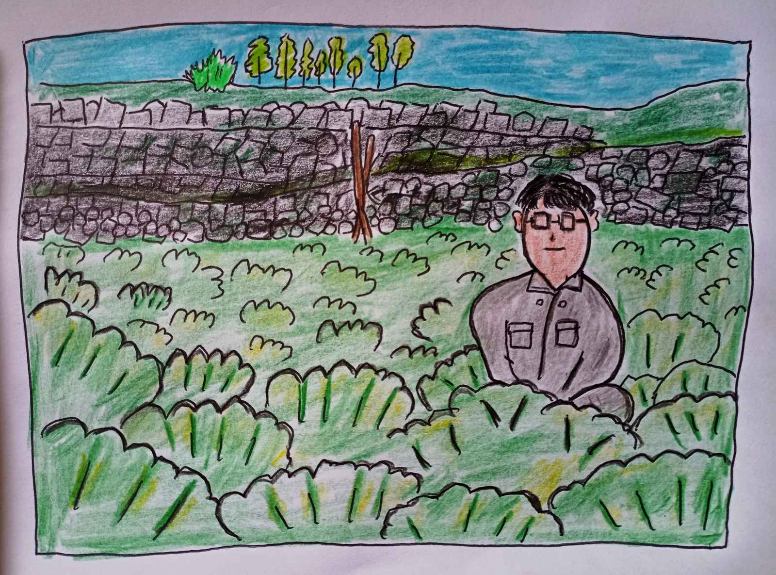 ⬆ 種菜的人。我知道有點像水餃,但我畫的這菜,其實是高麗菜。