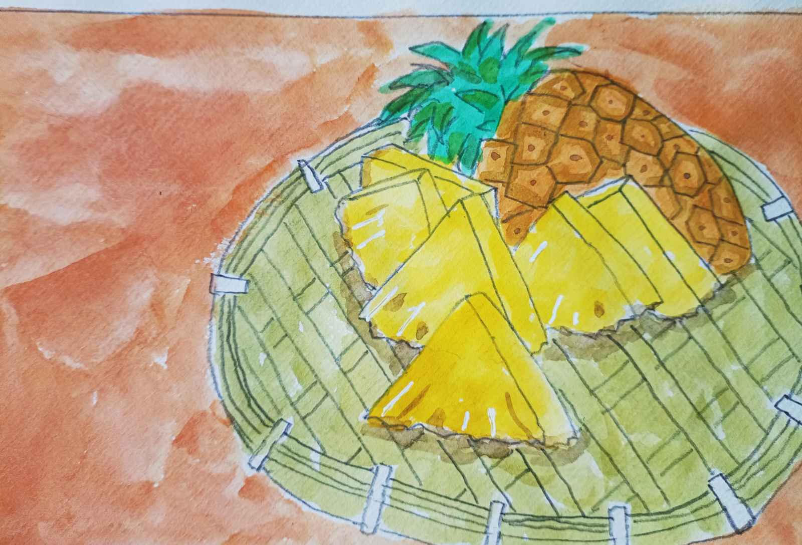 ⬆ 竹簍中的鳳梨 (雄獅不透明水彩+道林紙信封)