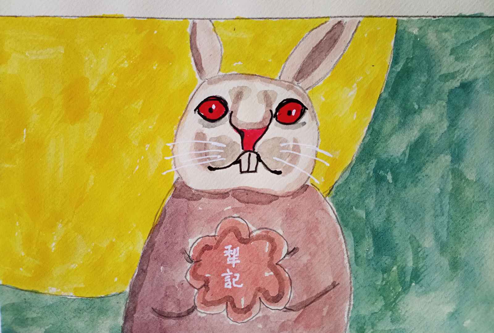 ⬆ 月光下拿著月餅的兔子 (雄獅不透明水彩+道林紙信封)