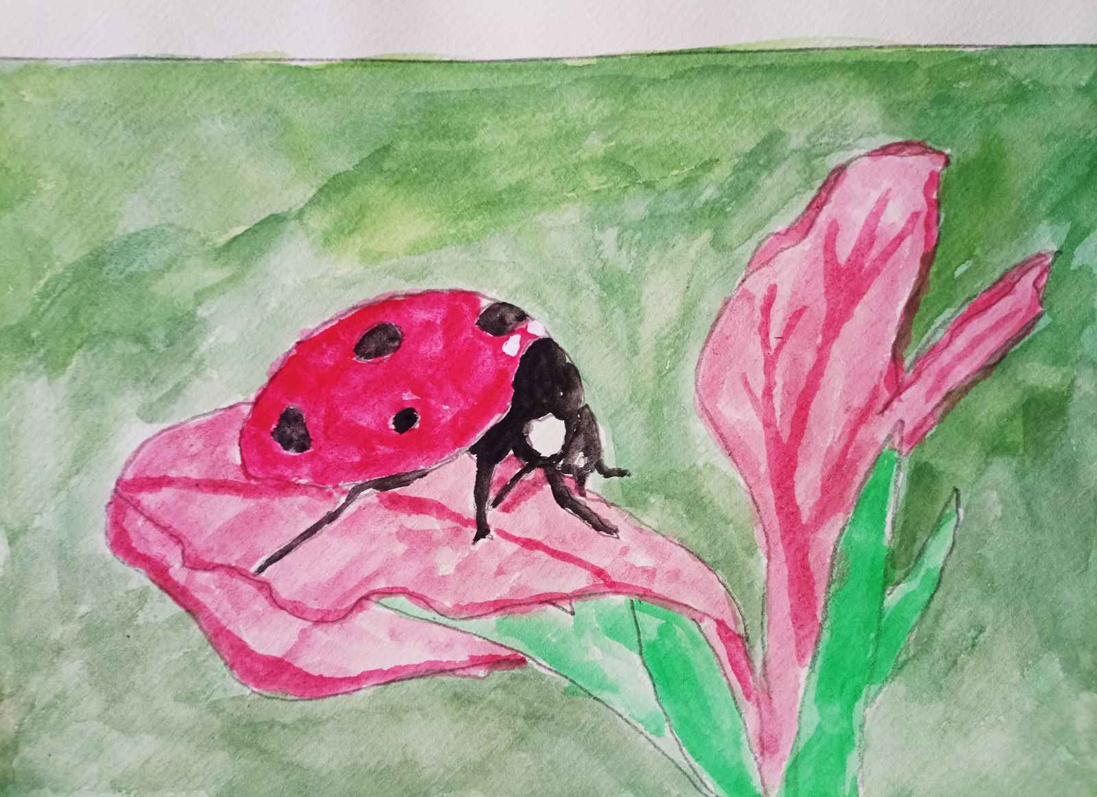 ⬆ 花朵上的瓢蟲 (雄獅不透明水彩+道林紙信封)