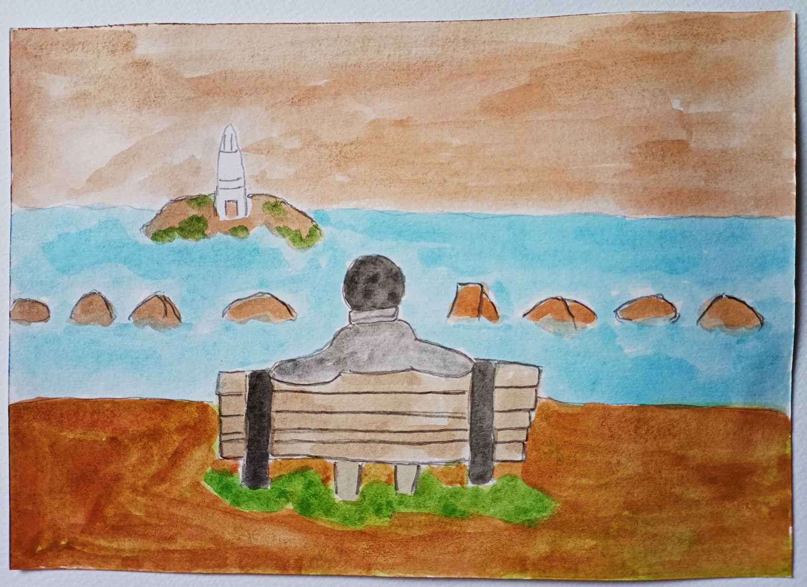 ⬆ 海岸邊放空的人 (雄獅不透明水彩+計算紙)