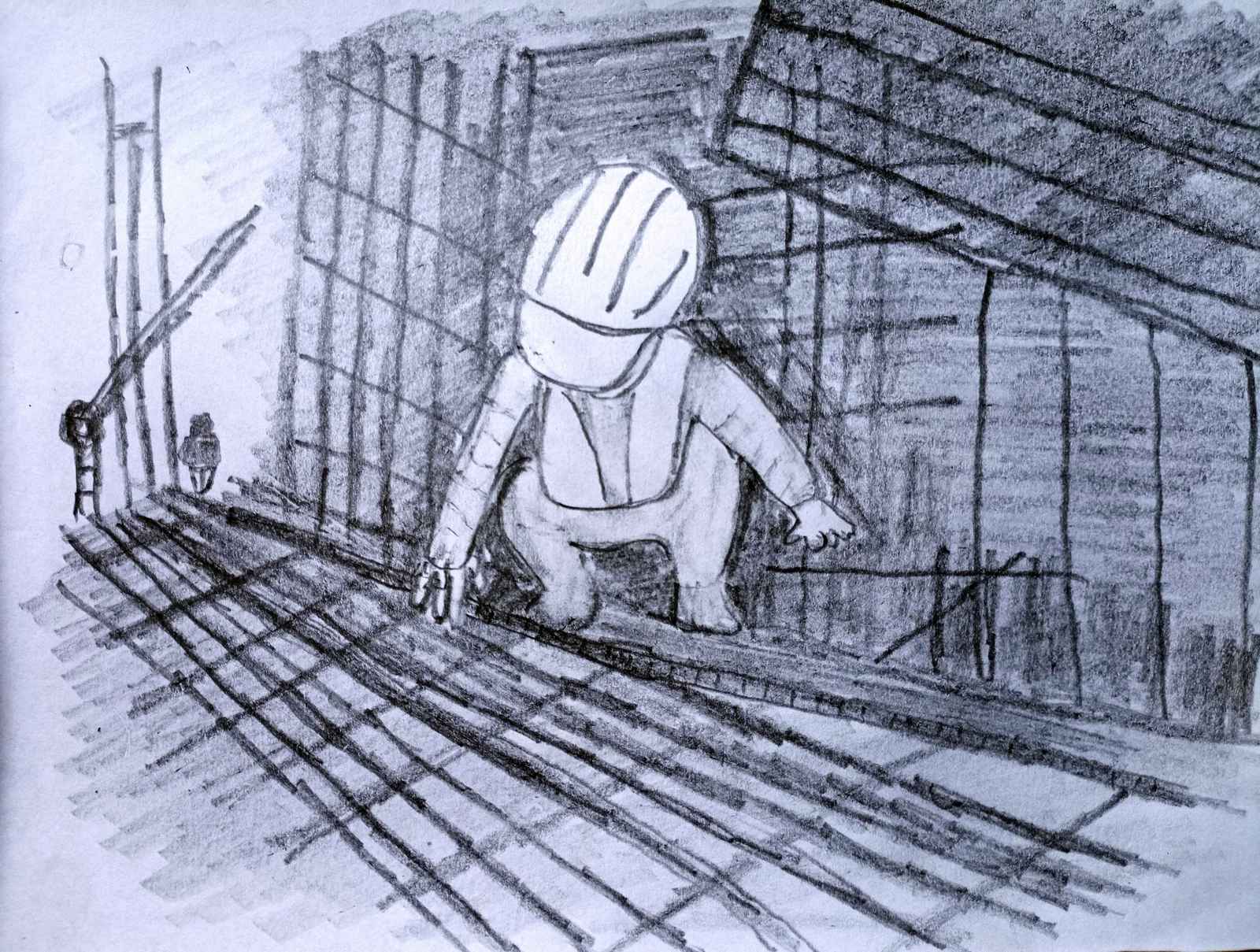⬆ 工地綁鋼筋的工人 (鉛筆+影印紙)