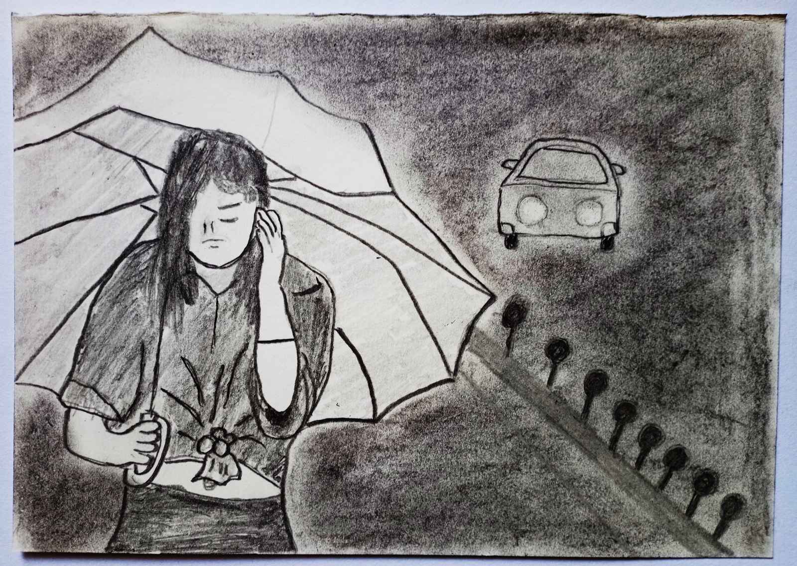⬆ 雨中的行人 (鉛筆+炭筆+黃素描紙)