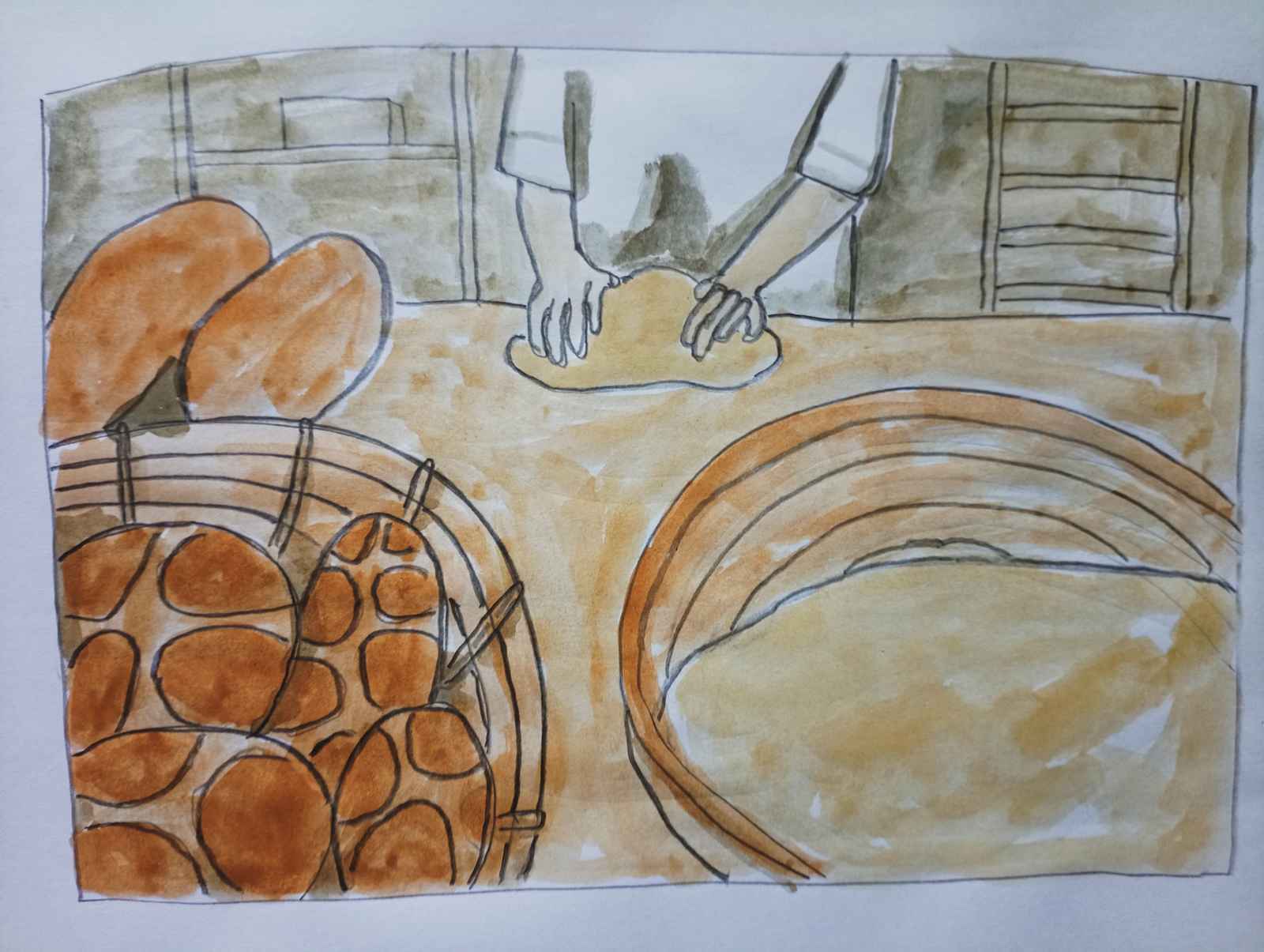 ⬆ 麵包工廠 (不透明水彩+計算紙)