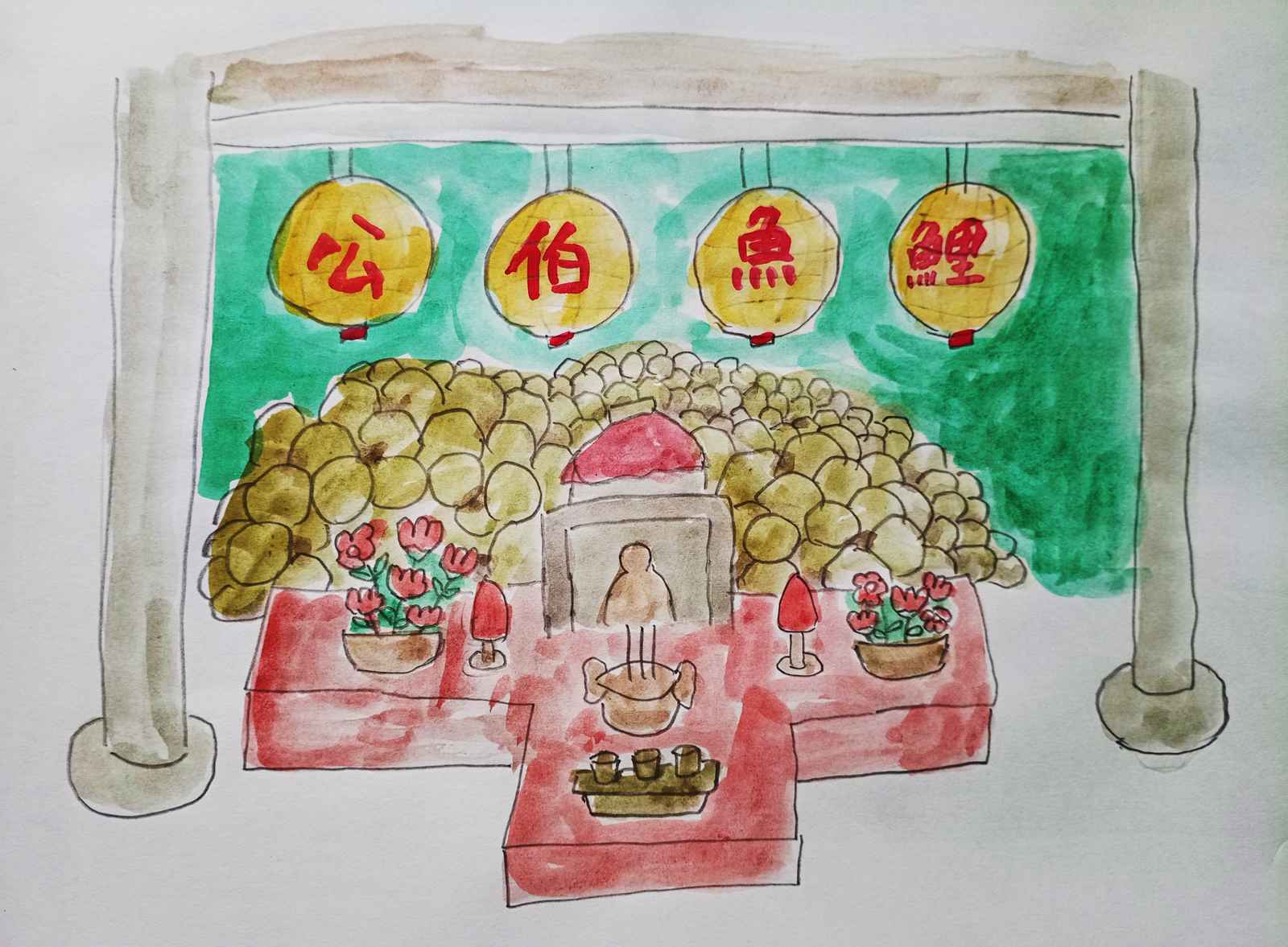 ⬆ 台中東勢永安宮 (不透明水彩+計算紙)