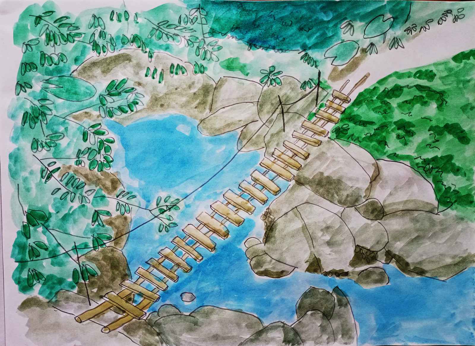 ⬆ 林中溪流 (雄獅不透明水彩+計算紙)