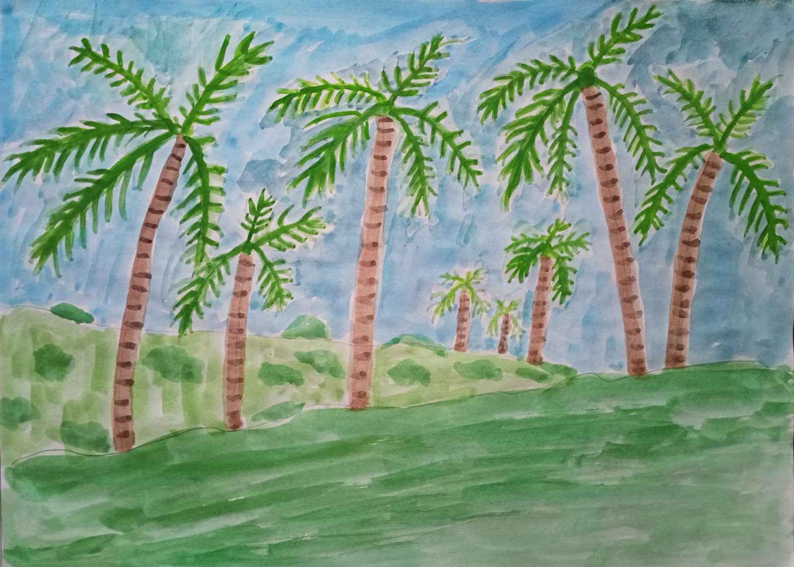 ⬆ 椰子林 (雄獅不透明水彩+計算紙)