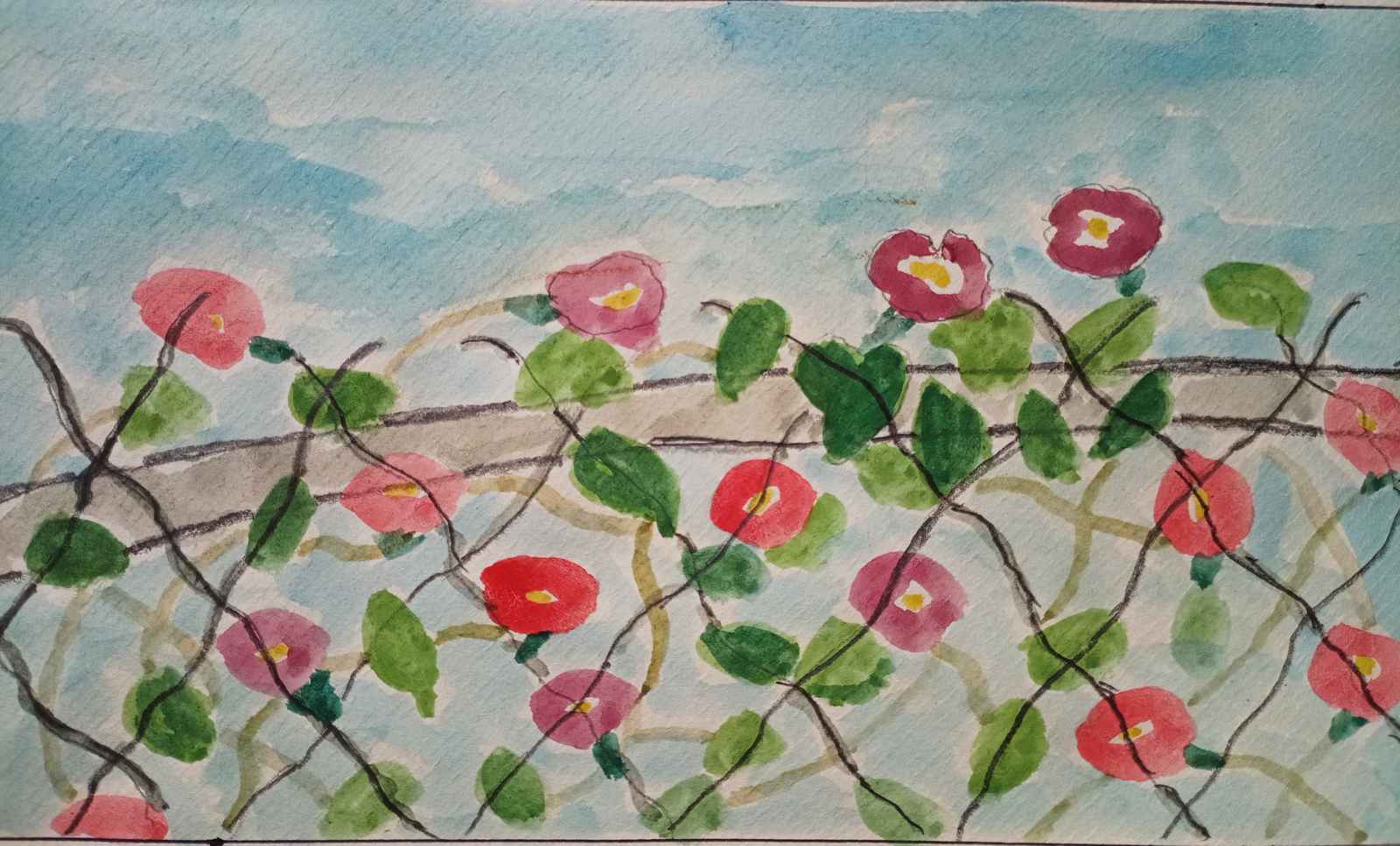 ⬆ 圍籬上的牽牛花 (不透明水彩+道林紙信封)