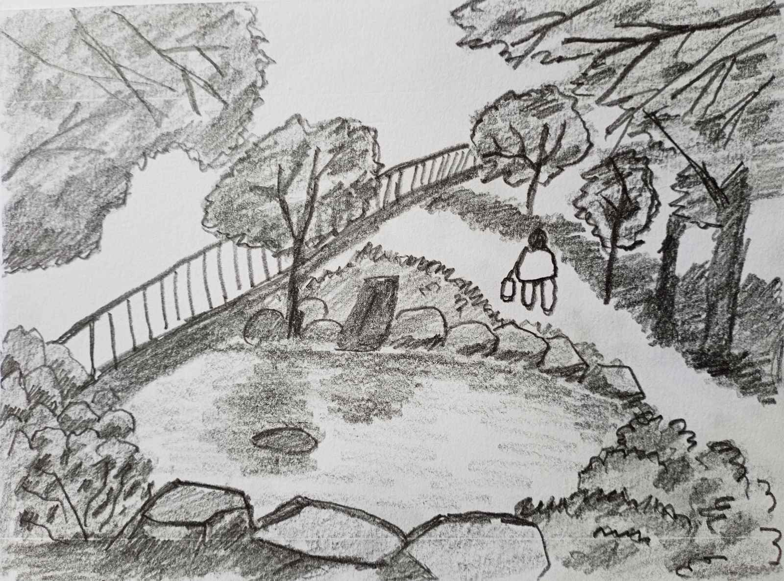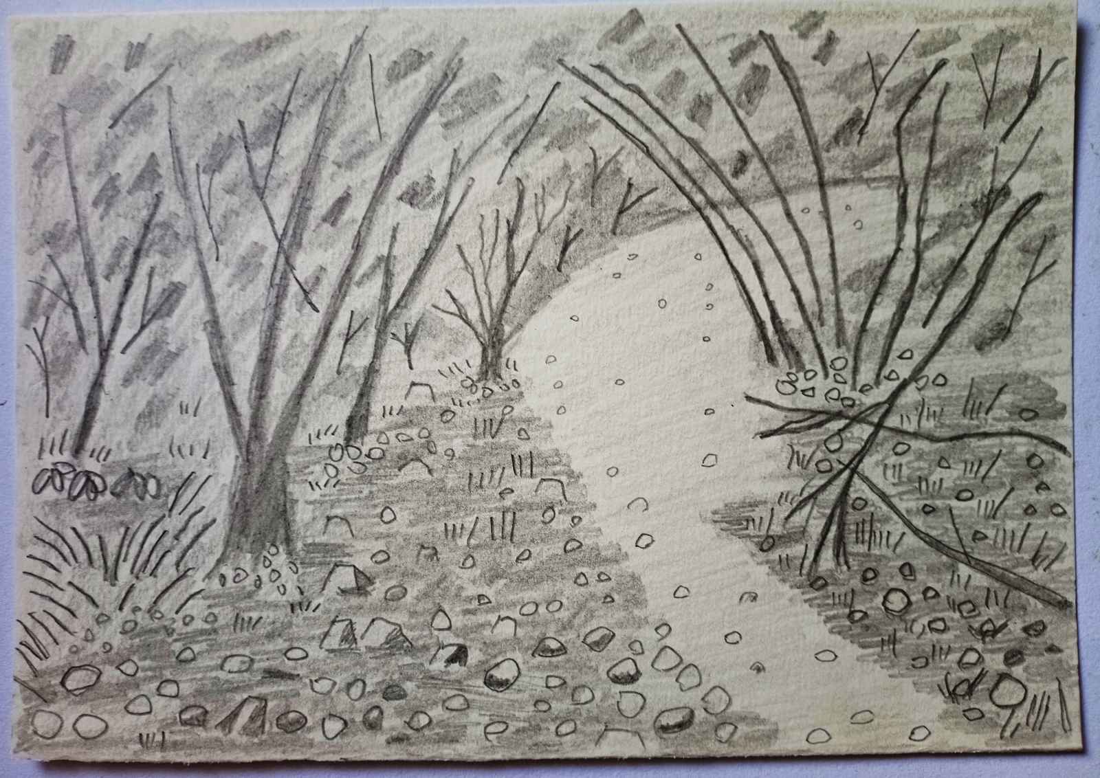⬆ 麻園頭溪步道 (鉛筆+黃素描紙)。