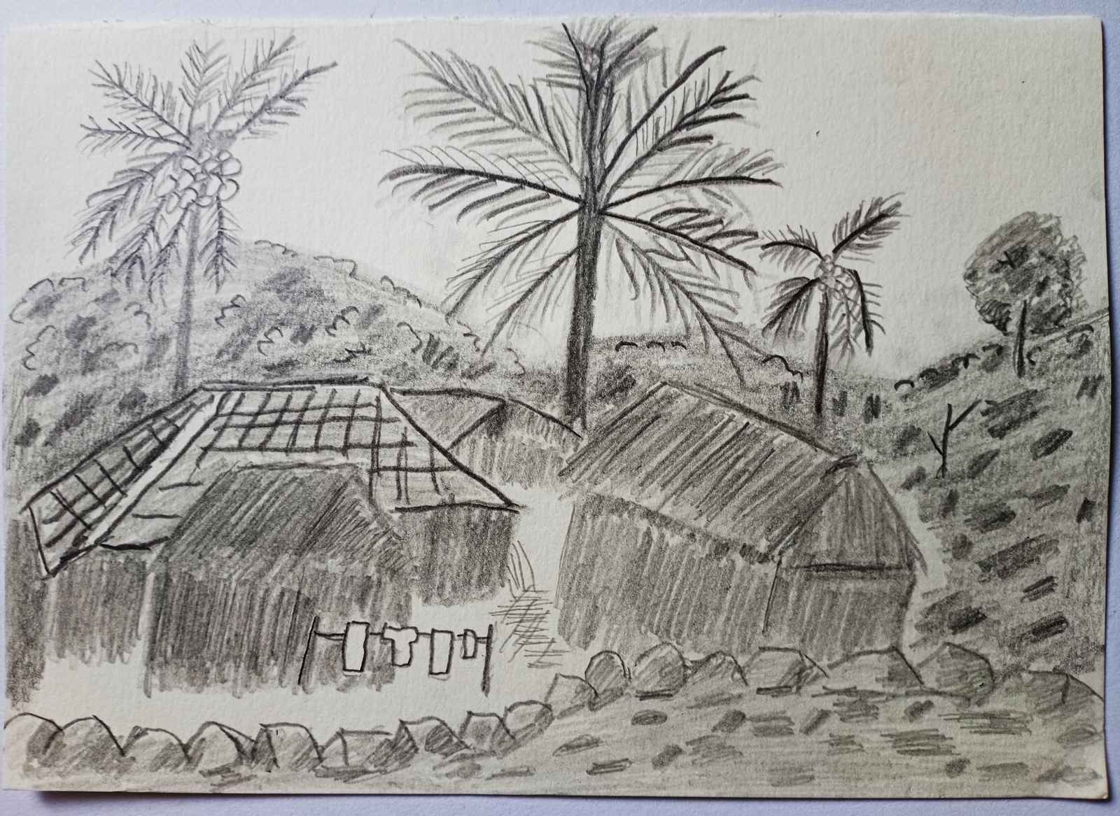 ⬆ 鄉村一隅 (鉛筆+黃素描紙)