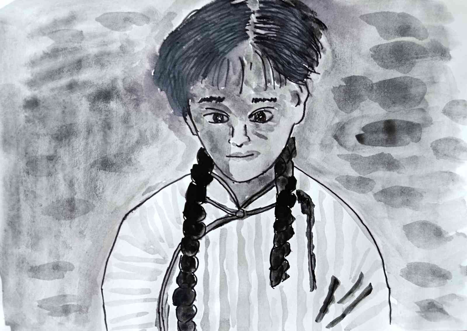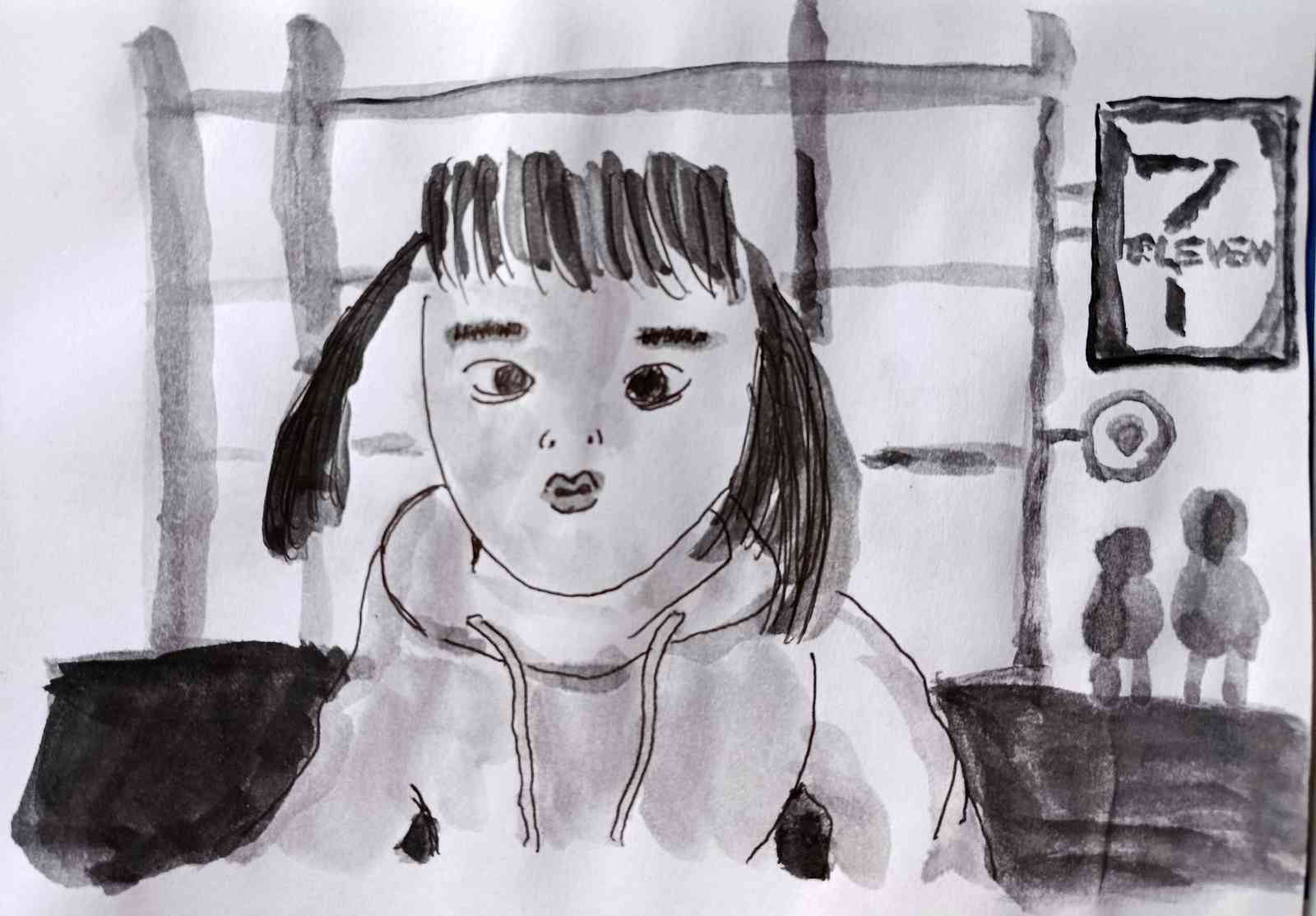 ⬆ 超商前的小女孩 (影印紙+雄獅不透明水彩)