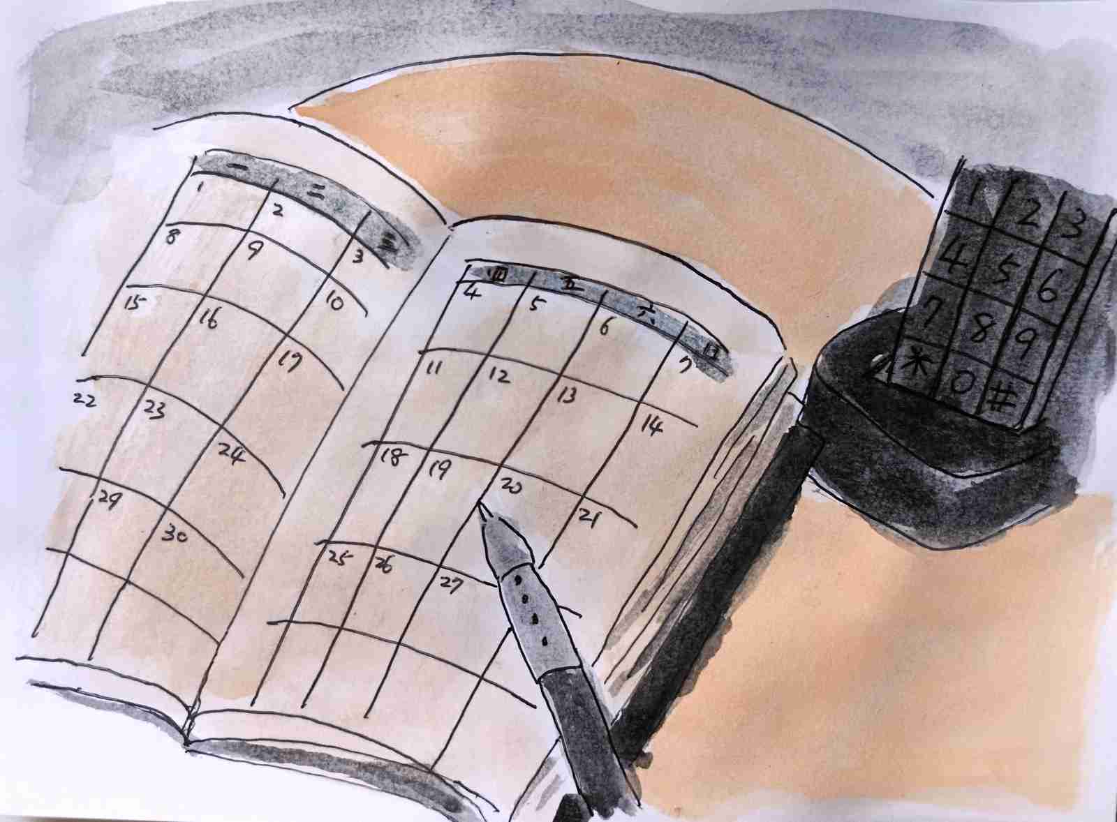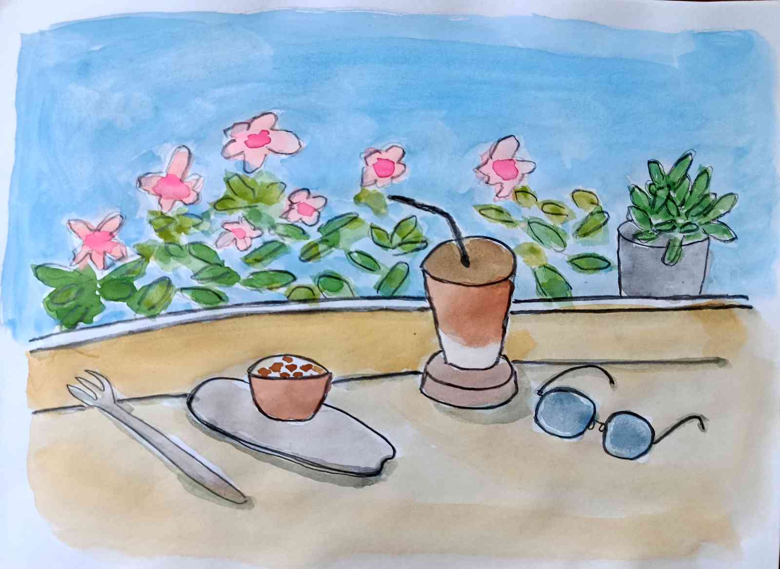 ⬆ 咖啡店內 (計算紙+雄獅不透明水彩)