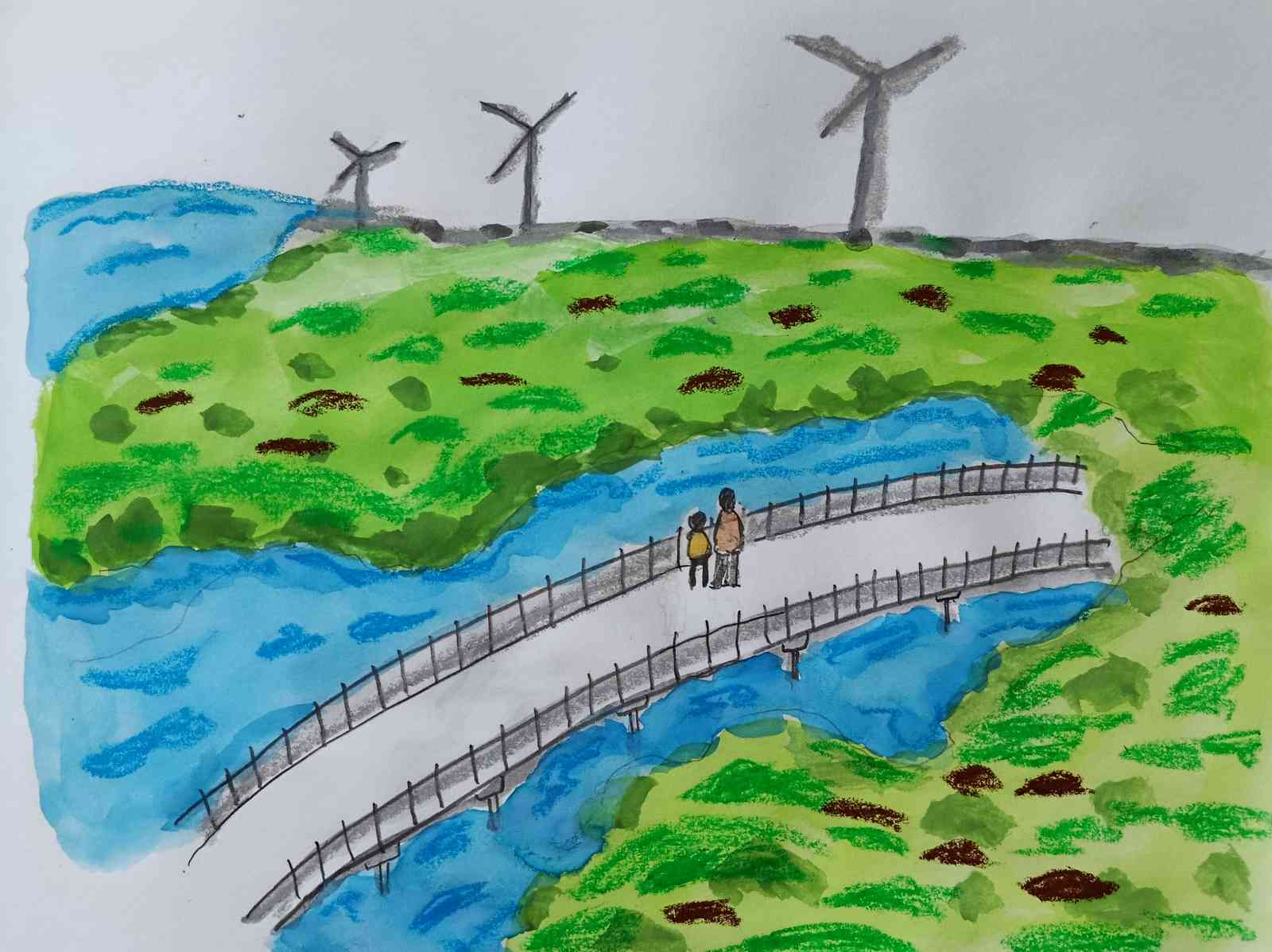 ⬆ 芳苑海空步道 (計算紙+雄獅不透明水彩+粉蠟筆)