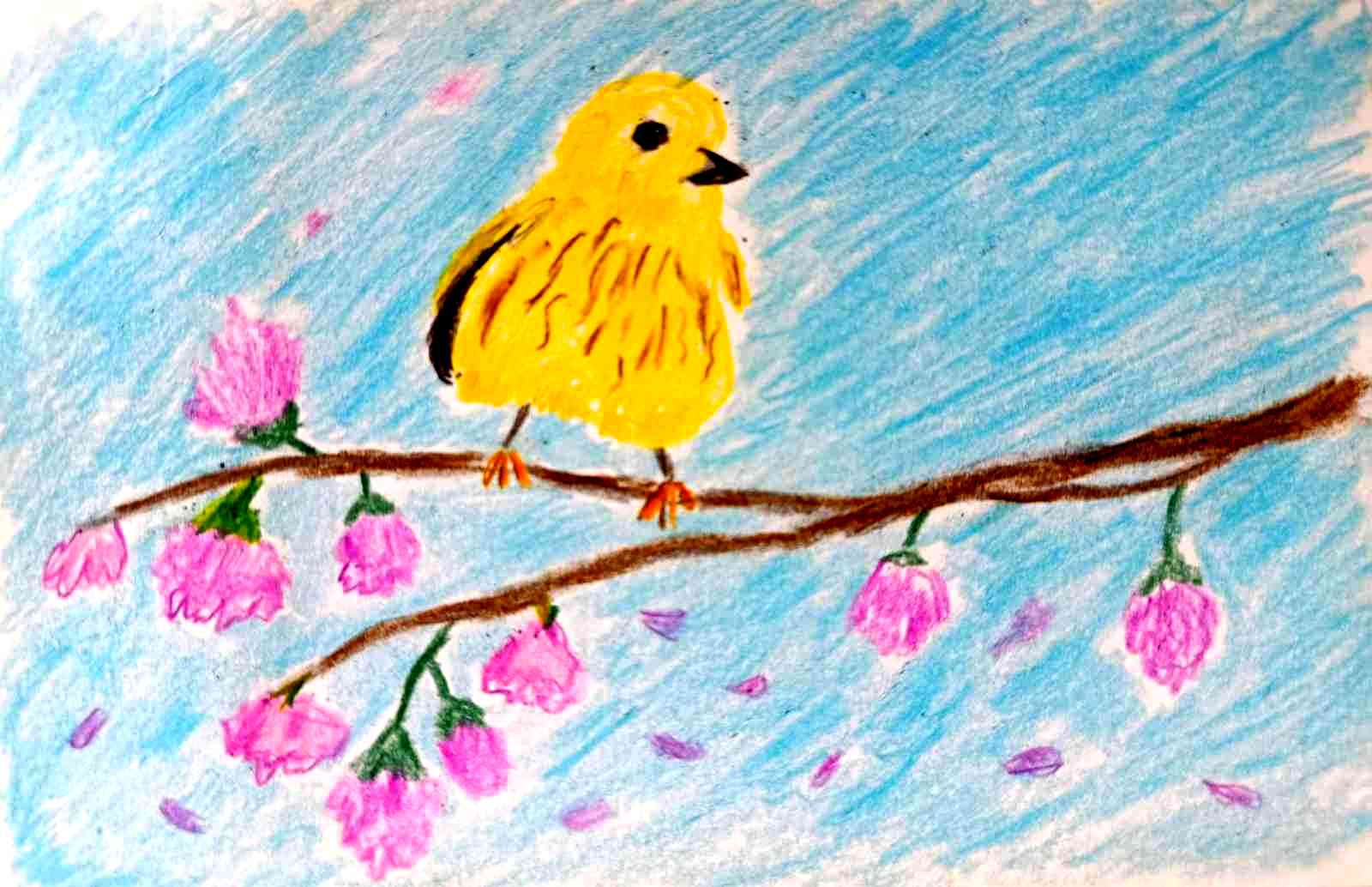 ⬆ 櫻花上的鳥 (MARCO 水性色鉛筆 + 小速寫本)