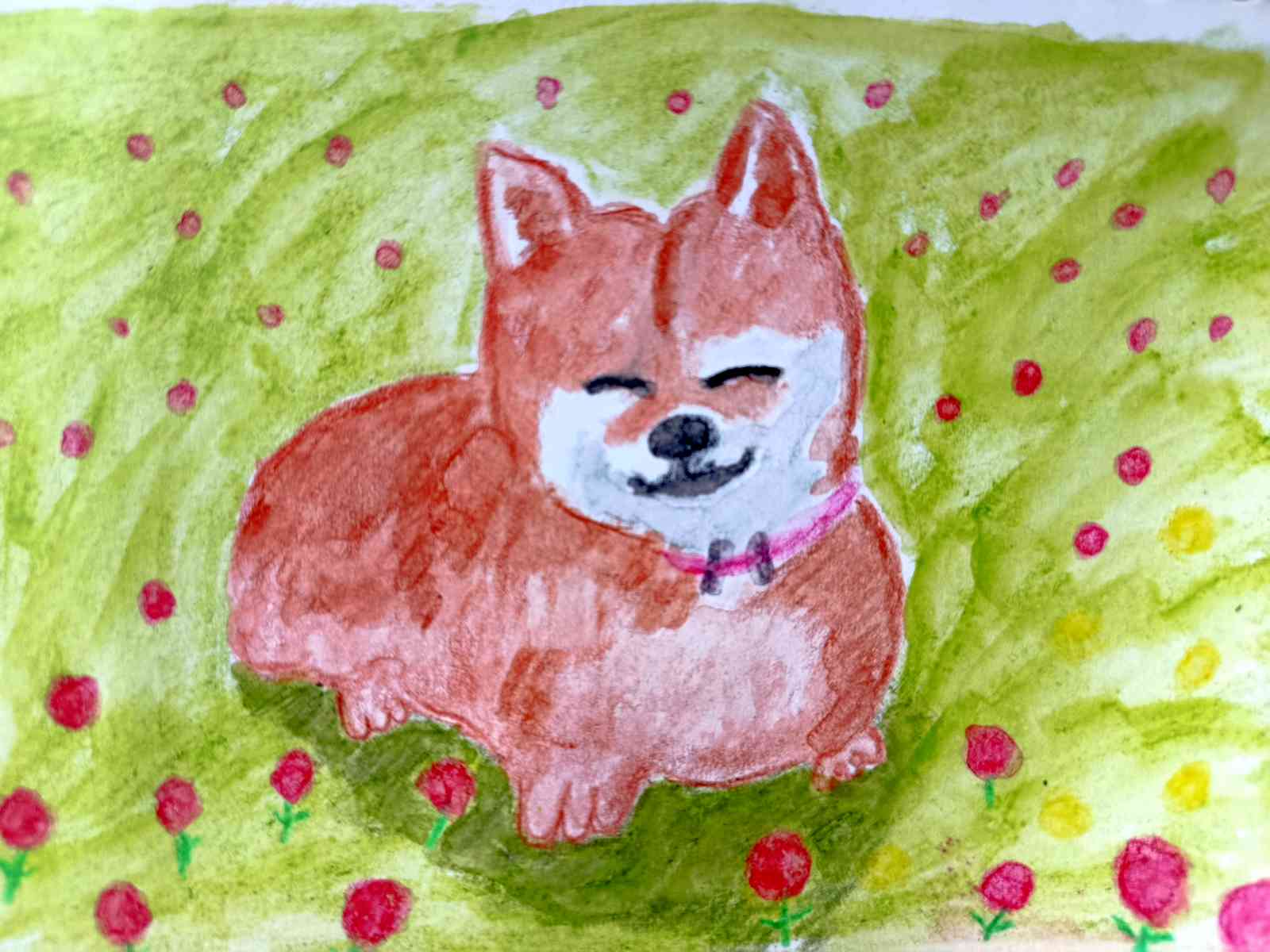 ⬆ 草地上的柴犬 (MARCO 水性色鉛筆+小速寫本)