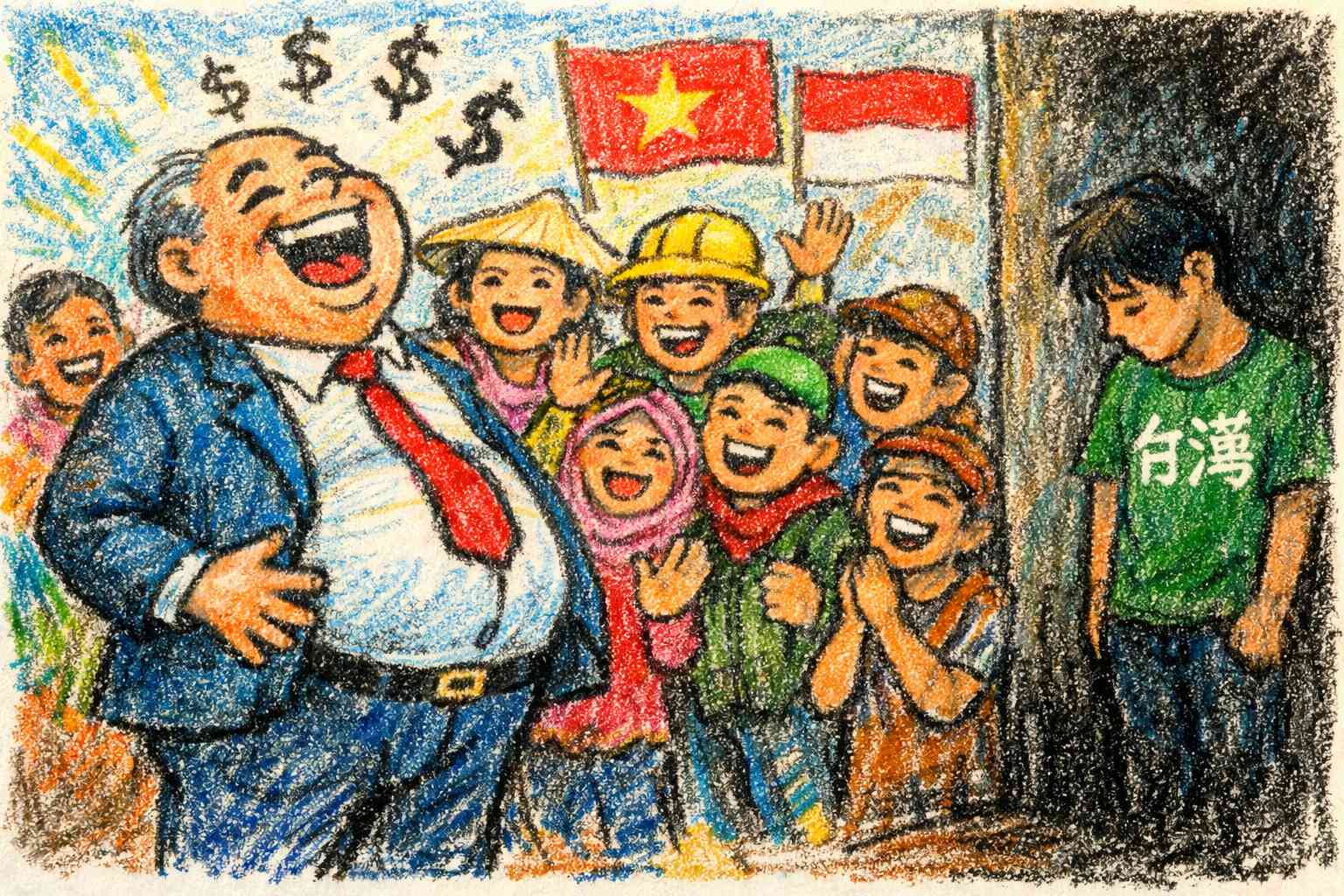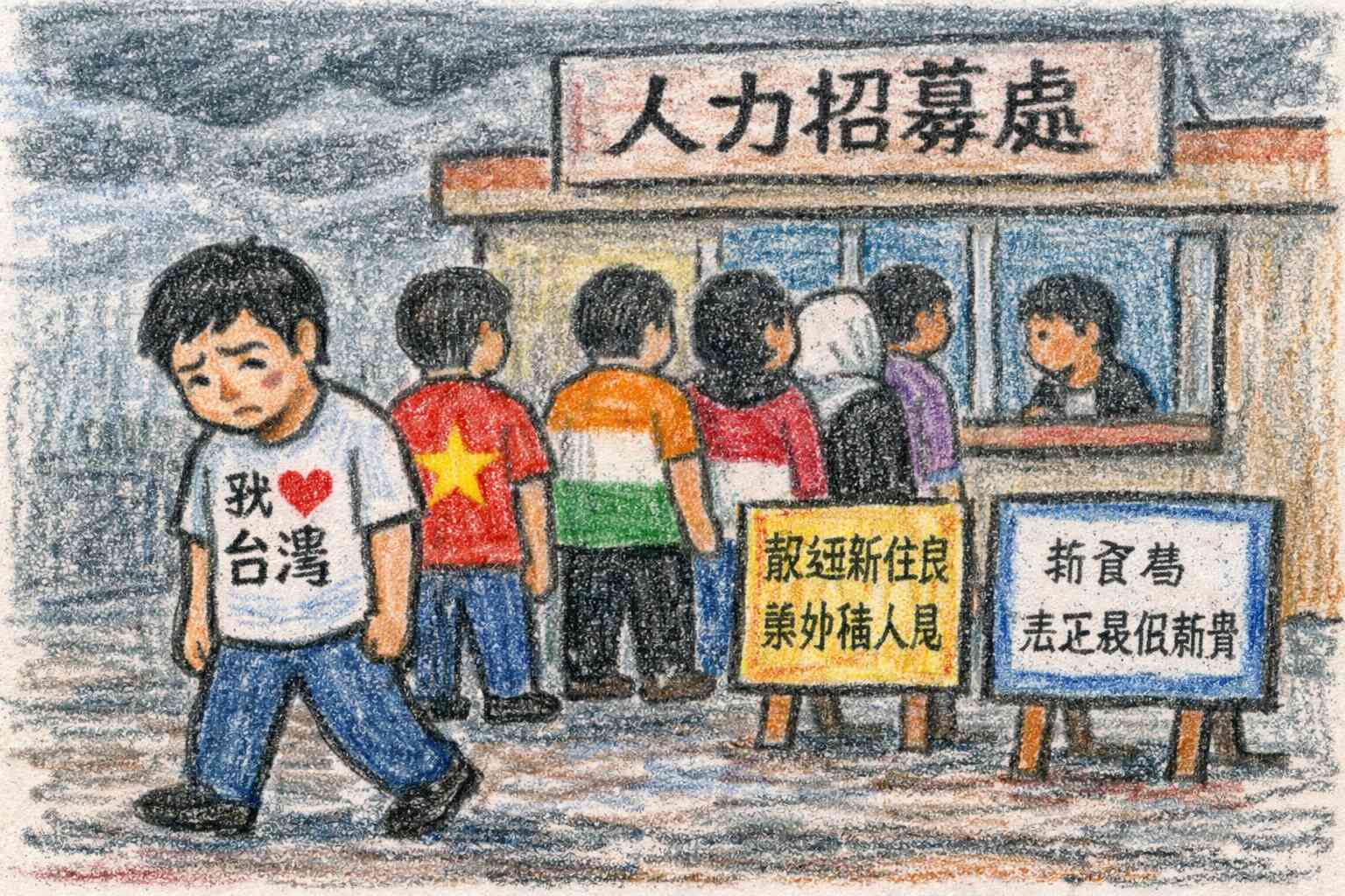 大量引進來自低所得國家的外勞,從來就不是單純的勞動力補充,而是一場精心鋪排的結構性壓榨。資本家打著「解決缺工」的旗號,實則是在進行一場成本最低的勞動力置換——用更窮的人,取代本來就窮的人,讓整座島嶼的薪資水準,向下沉淪。