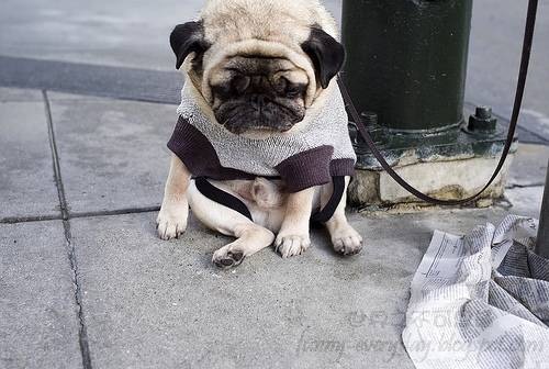這隻滿臉皺紋,表情憂傷的八哥犬,名字叫「紐曼」,這是牠的主人為了紀念好萊塢大明星保羅紐曼而替牠取的。