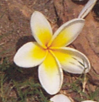 名稱:雞蛋花。原產夏威夷。夏威夷叫『女人花』,原因:此花無心。諷刺女人光有美麗外表,做事卻常不用大腦