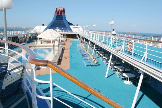 十樓甲板上的游泳池,分大人與小朋友兩池,嚴格來說,用大小來看,應當說是泡水池差不多,所謂的大泳池,應該連擠一百人都有困難,小朋友的更不用說,不過兩個圓形按摩池讓我還挺有興趣的,不知道邊泡按摩池邊吹海風的感覺怎樣?