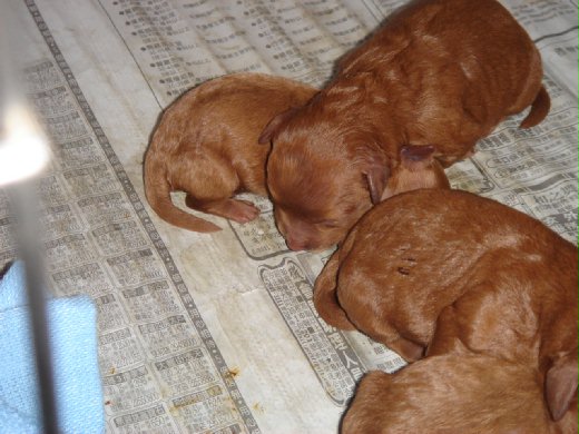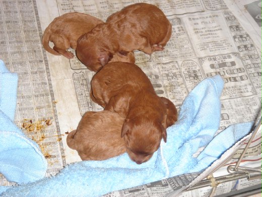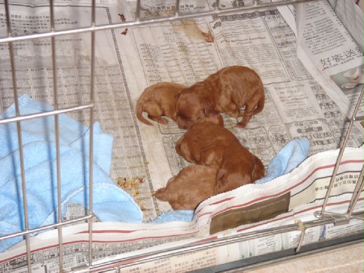 男友三姐的紅貴賓狗,在昨晚到今天凌晨產下了3公1母的小紅貴賓