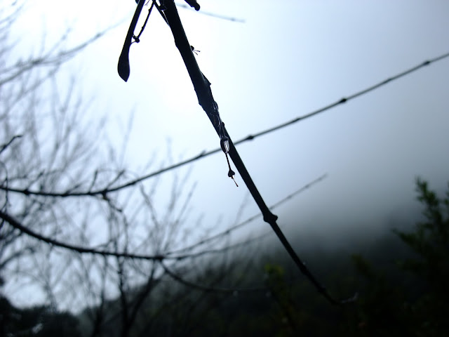 看山上的水氣相當重。這不是晨露而是下午四點的山中的大霧所凝結的露水。