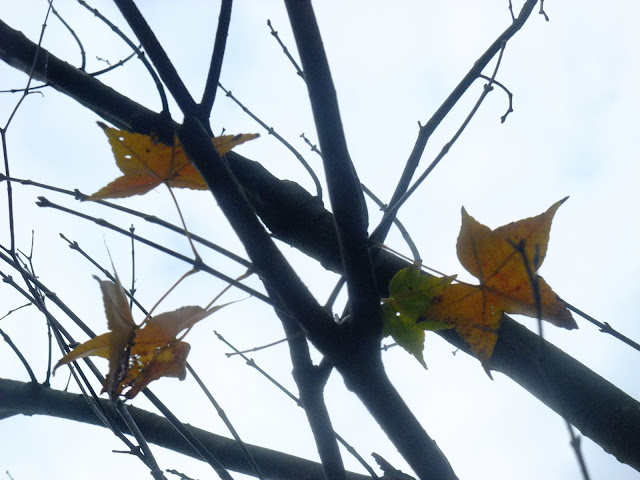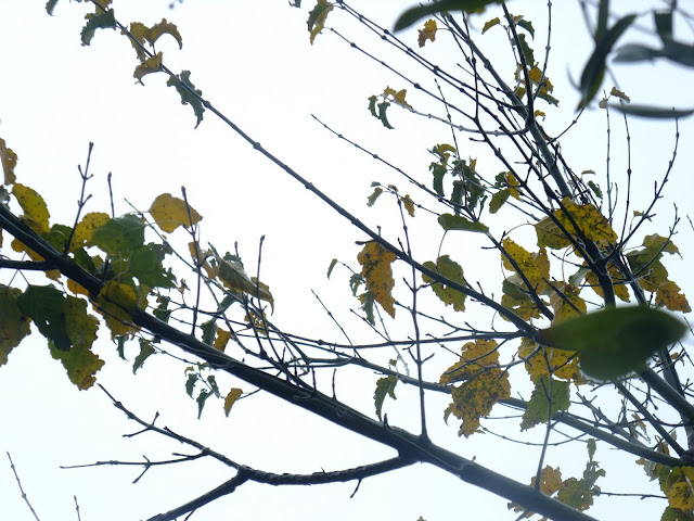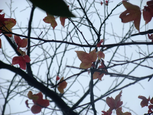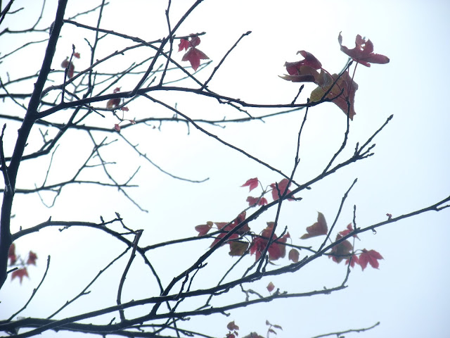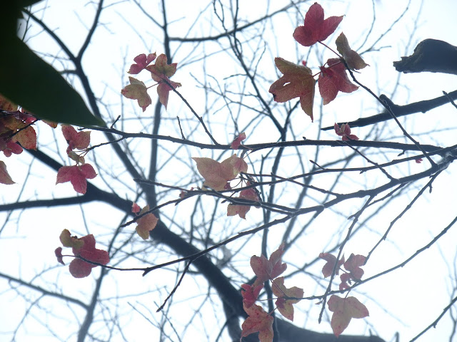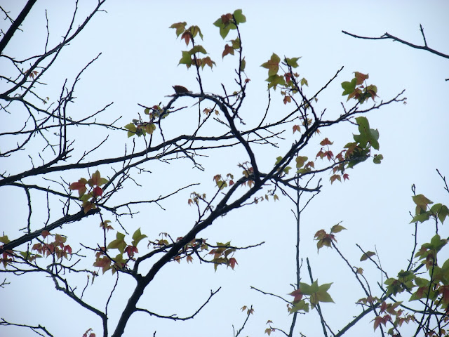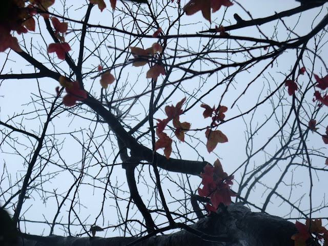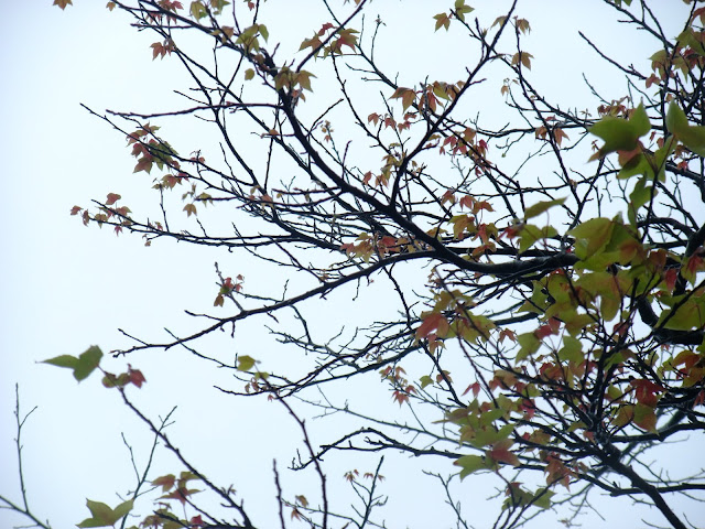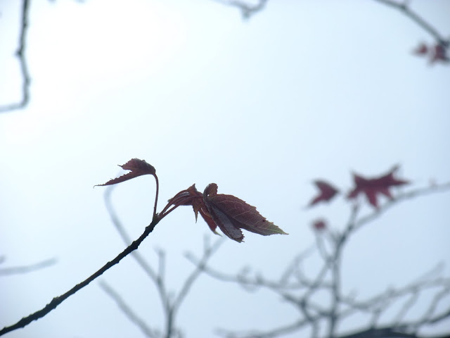 經過的單車客不停的往前衝,但經過景致讓我停駐不前,繼續欣賞霧中的楓。帶有綠葉的楓,綠紅的顏色。