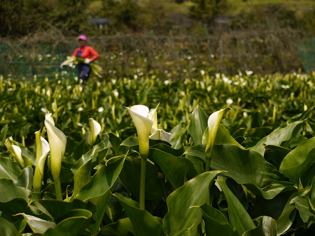 今年第一次來竹子湖但看到的花況 目前都還很小株。有的店家甚至還有低消收費剪海芋。