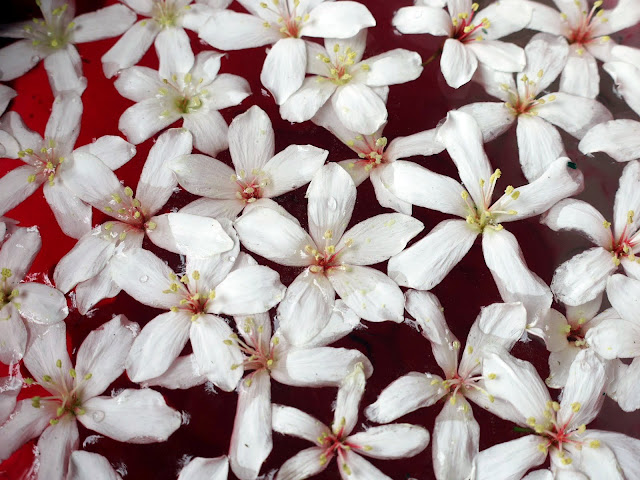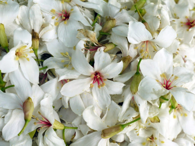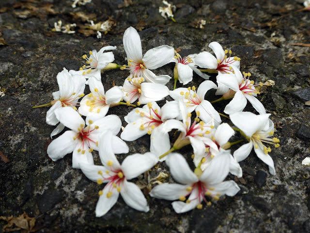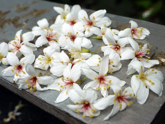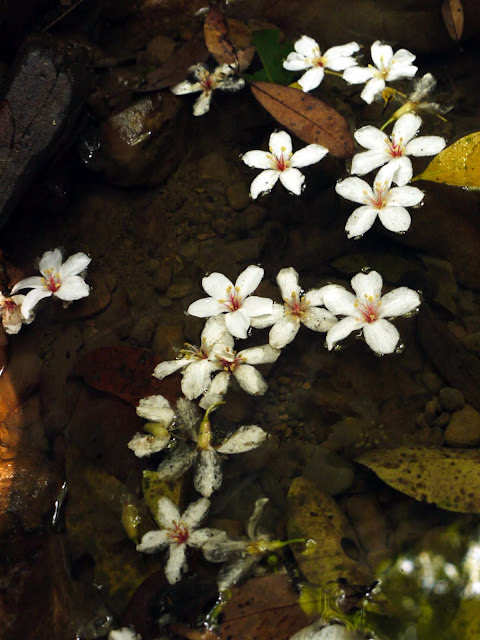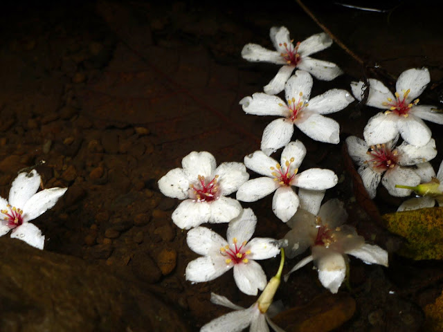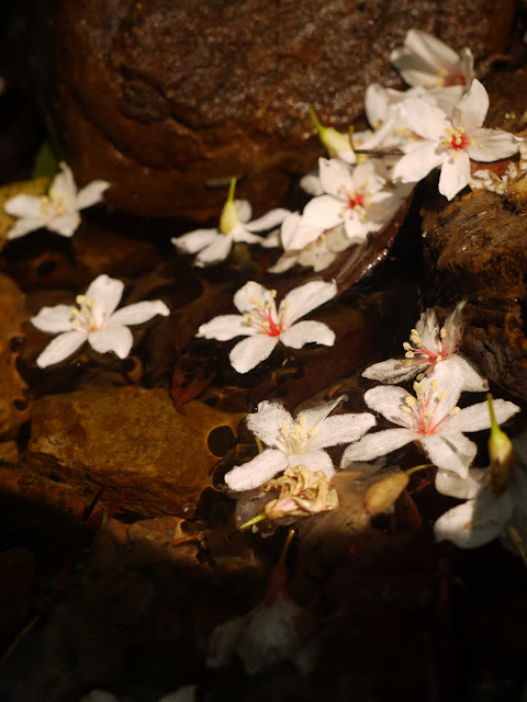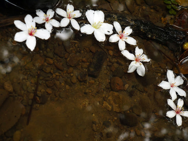 溪流邊的桐花堆積到整個河道都是。