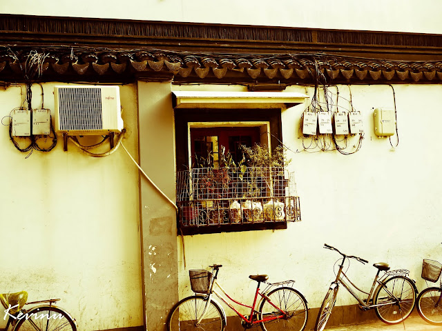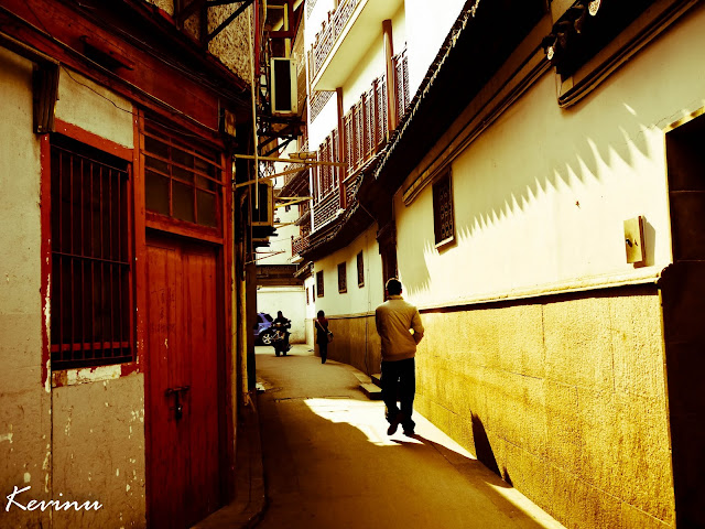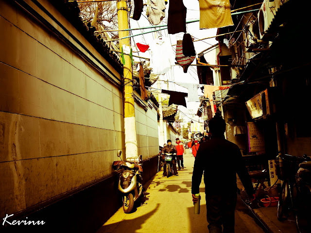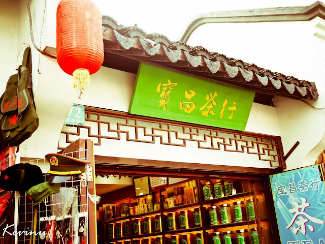 一座座的商店街賣著各式擺飾樣品,與茶館。這邊的老街不賣吃的,吃的都集中在小吃城裡。