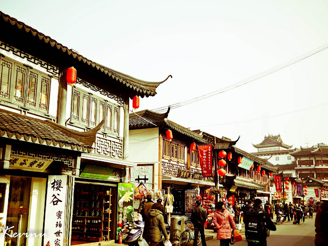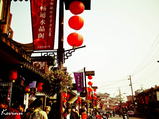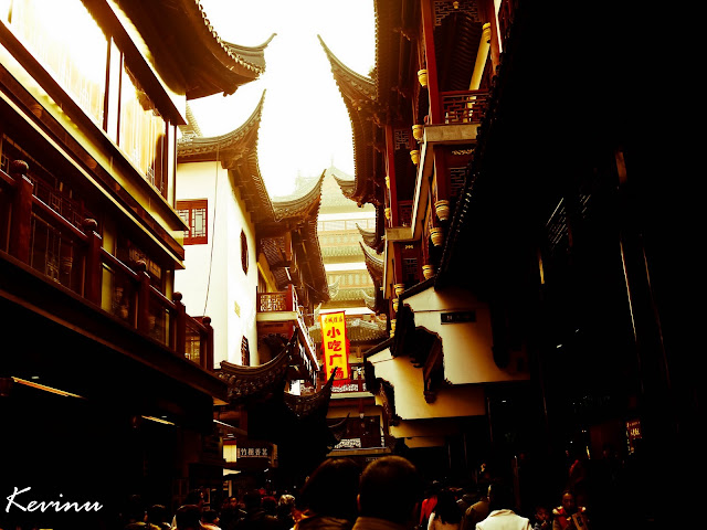 中國走到哪都是擁擠的人擠人。在這古色古香的街道上也是很多觀光客,因為這裡離上海豫園相當的近。 豫園是上海觀光公認的最大的景點,不但離都市近依然保有古貌。