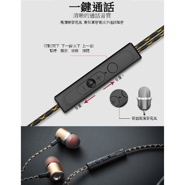 金屬腔立體聲重低音 可接電話 耳機麥克風(耀眼金)