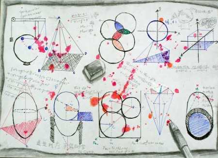 上完超現實的理論課程後,我們進行一項高難度的「數字」考試,學生必須運用考卷的數字進行創作。雖然是不簡單的挑戰,同學仍然發揮獨特的創意,將數字化身為城堡、森林、美女‥‥ |