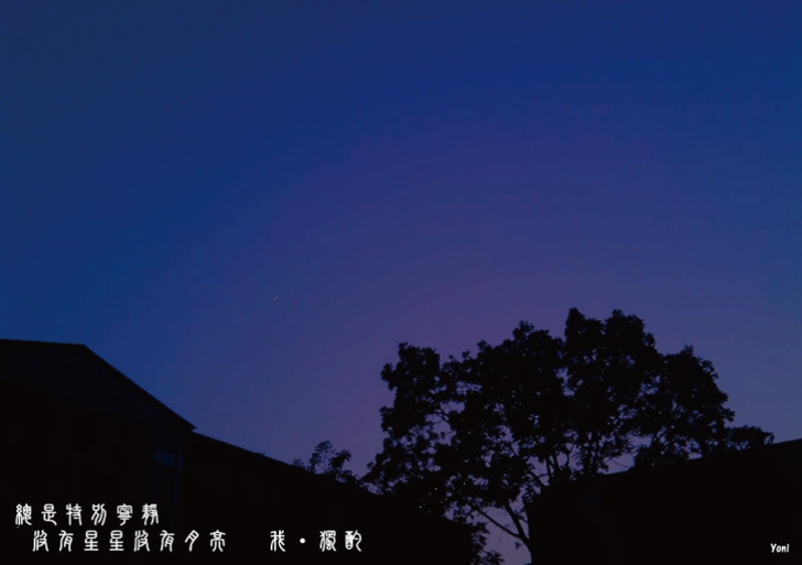 等候-雄女之夜-暗紫天空,寂寞而沉靜的夜。候車時,偶爾 抬頭望向天際,或許能沉澱心靈的疲憊。 |