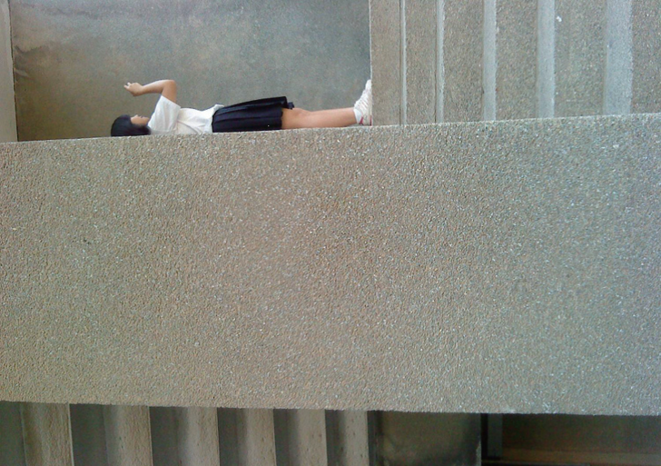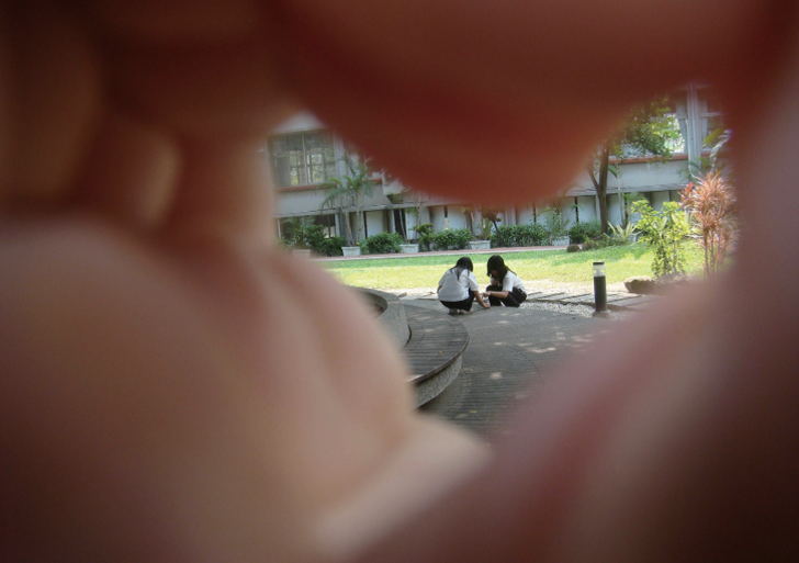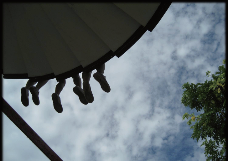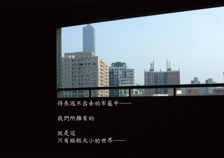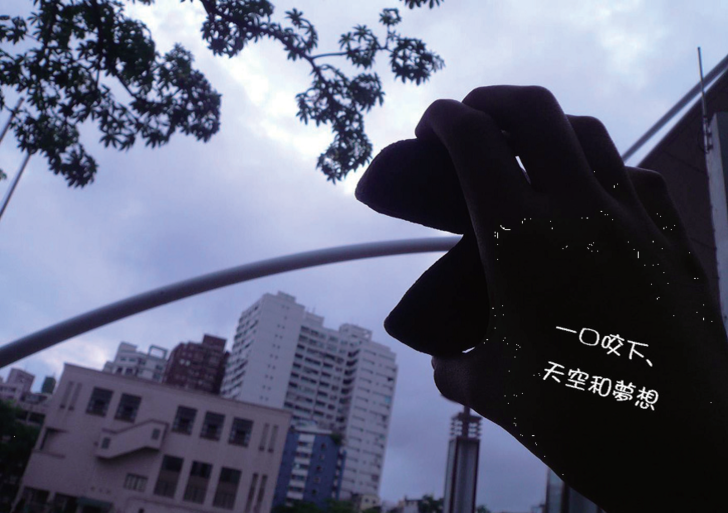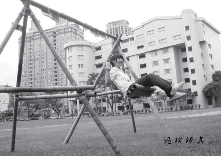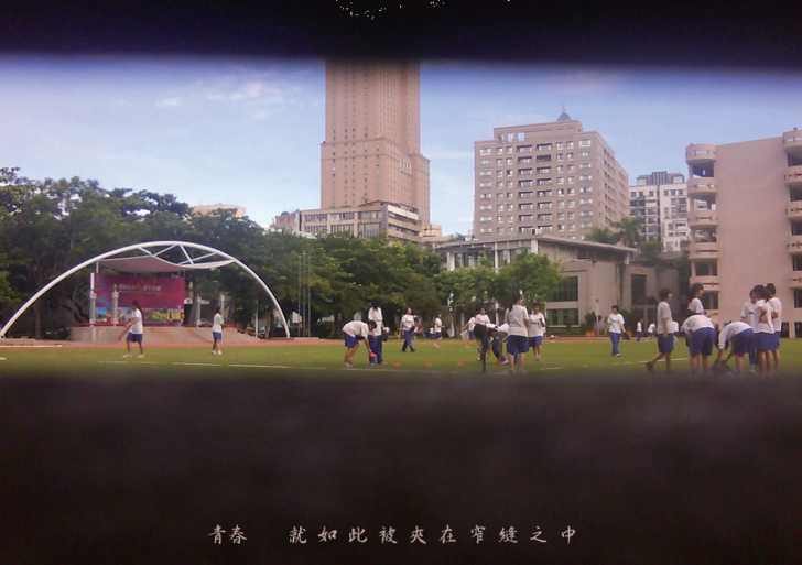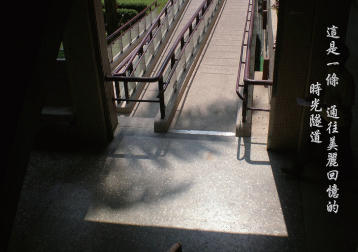 跳板-那時在藝能大樓的七樓,眺望著雄女校園,便想起了 雄女是無數個成功人士的一站,也是跳躍進社會的一個跳 板。於是竊笑著脫掉我的鞋子,在雄女校樓上比劃著,像傻 子一般,希望也能想像其他學姊一樣,一躍而上。 |