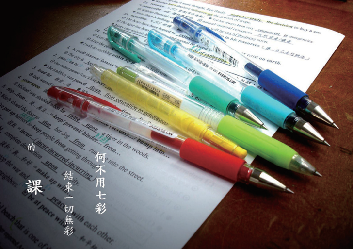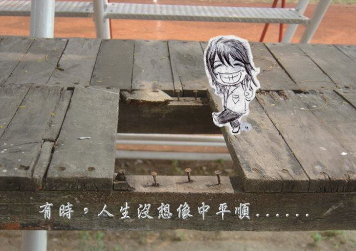 時間在舊桌椅表面刻下足跡。 光陰,光陰。我們就在光、陰的輪替中走過青春歲月。 |