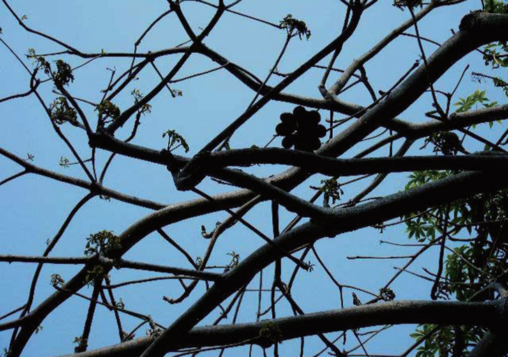 哪來一株這麼有勇氣的花?在枝頭只剩寥寥無幾的殘葉時, 依然盛開地那麼美、那麼自然。 |