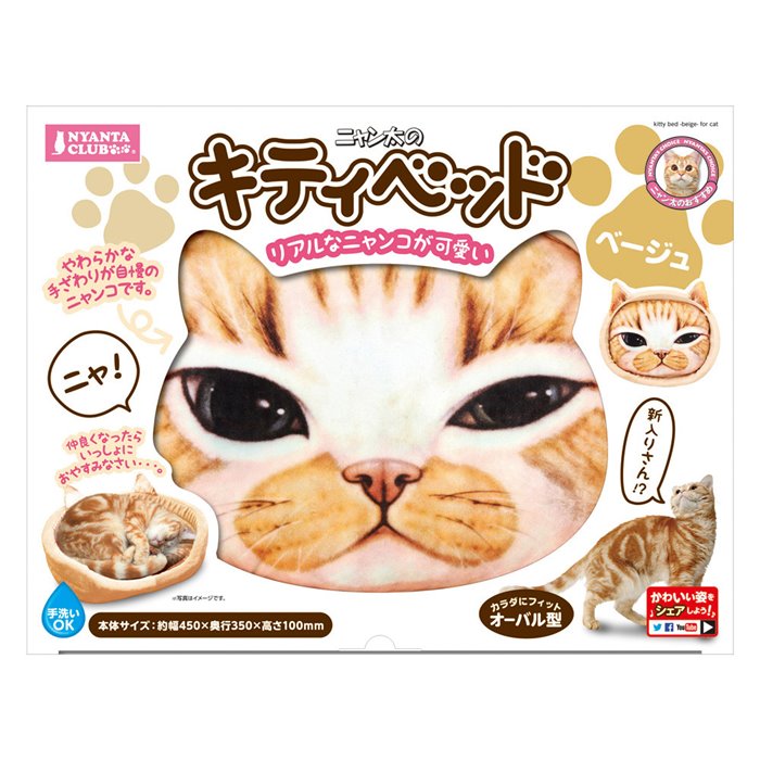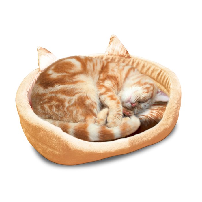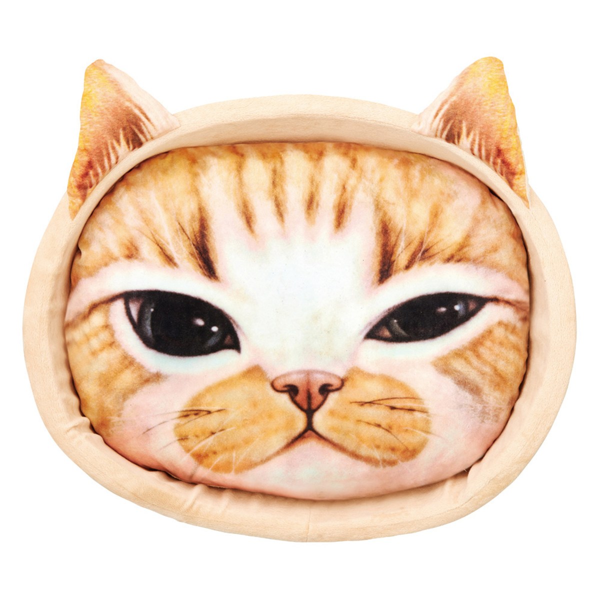 - 可愛貓臉寫真印花圖樣,橢圓形適合貓咪愛捲曲的身型