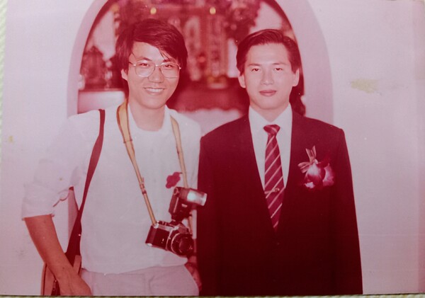 因為兩人很要好,所以他結婚的時候要我幫他照結婚照。當時非常喜歡攝影,所以一路上跟拍到嘉義女方,又到澄清湖拍他們賢伉儷的結婚照。