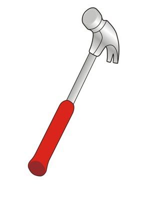 人自己不能把鐵釘打入牆壁,因此要利用工具,拿鐵鎚把鐵釘敲入牆壁。