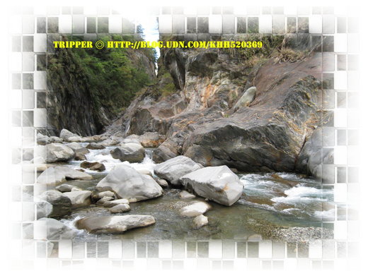 是「霧鹿」而不是「誤入」喔!一路下坡,所以走得也輕鬆多了,剛剛的持續爬坡真得讓人有點吃不消!「霧鹿峽谷」著名的是山壁中噴出溫泉,河谷裡也有許多大大小小的野溪溫泉!這裡的碳酸溫泉,是享譽盛名的!