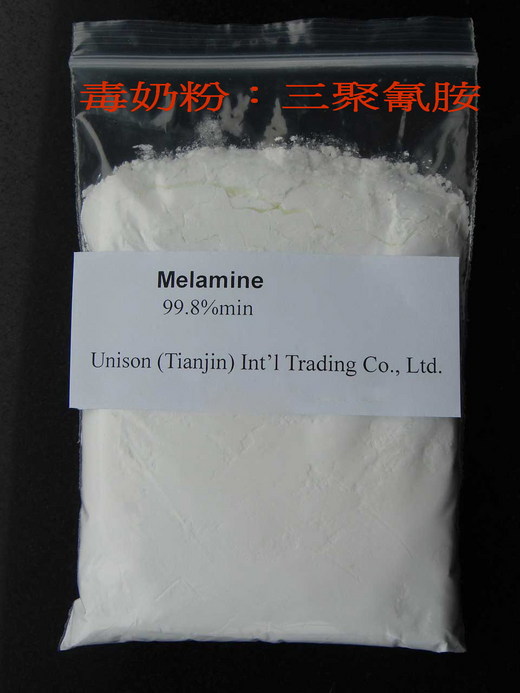 由於"melamine"的外觀極白又香,再加上化學上的穩定性,而且含有高量的(N)氮元素,使得黑心廠商可以偽裝成蛋白質,因而蒙混通過檢查。