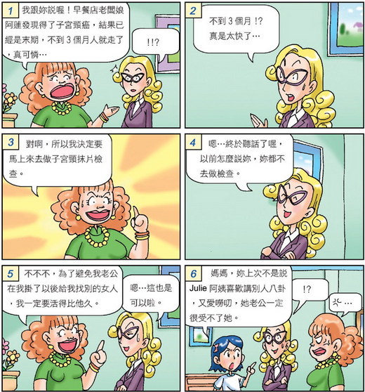 即使用"癌"來恐嚇威脅也是無效的!因為半年前,她也曾在內科就診,當時就有工作人員提醒該做婦科檢查,但她仍拒絕,至為可惜。
