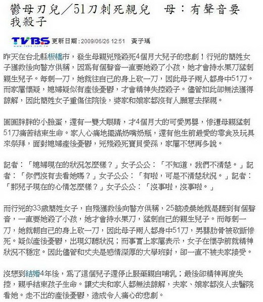 本週令人心驚的"傷嬰"(Infanticide)新聞,其實在近年來並不少見,只是這一次特別可怕。