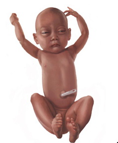 原則上是利用超音波在專家醫師的測量下 , 胎兒体重比實際週數少四週以上 , 而且在接連的檢查二至四週內 , 都沒有繼續再生長 。