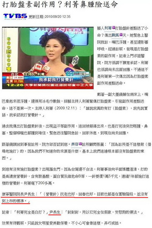 2009-9-20 東森新聞-違法打胎盤素 利菁嚴重過敏送醫