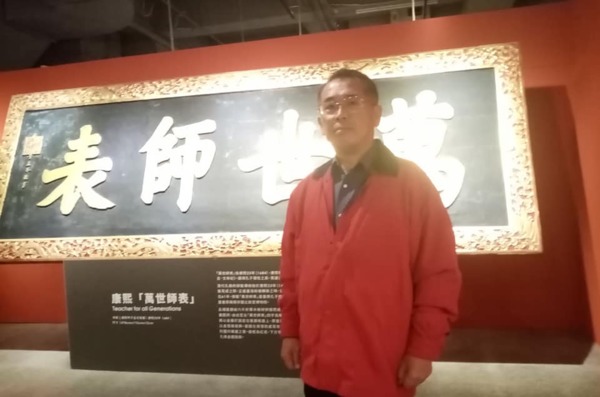 *圖1.在台南府城,於康熙「萬世師表亅御匾真品前留影。