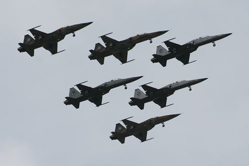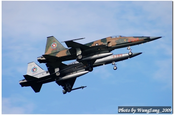為表慎重本人特前往台東塔台「恭迎其盛」。在碧藍的晴空中,F-5E/F戰鬥機由志航機場起飛,以四機編隊加入台東機場04跑道五邊,密集低空衝場後再加入機場航線,逐一右轉對正跑道單機落地,在尖銳號亮的噴射引擎聲中,一批接一批的降落,剎是壯觀!